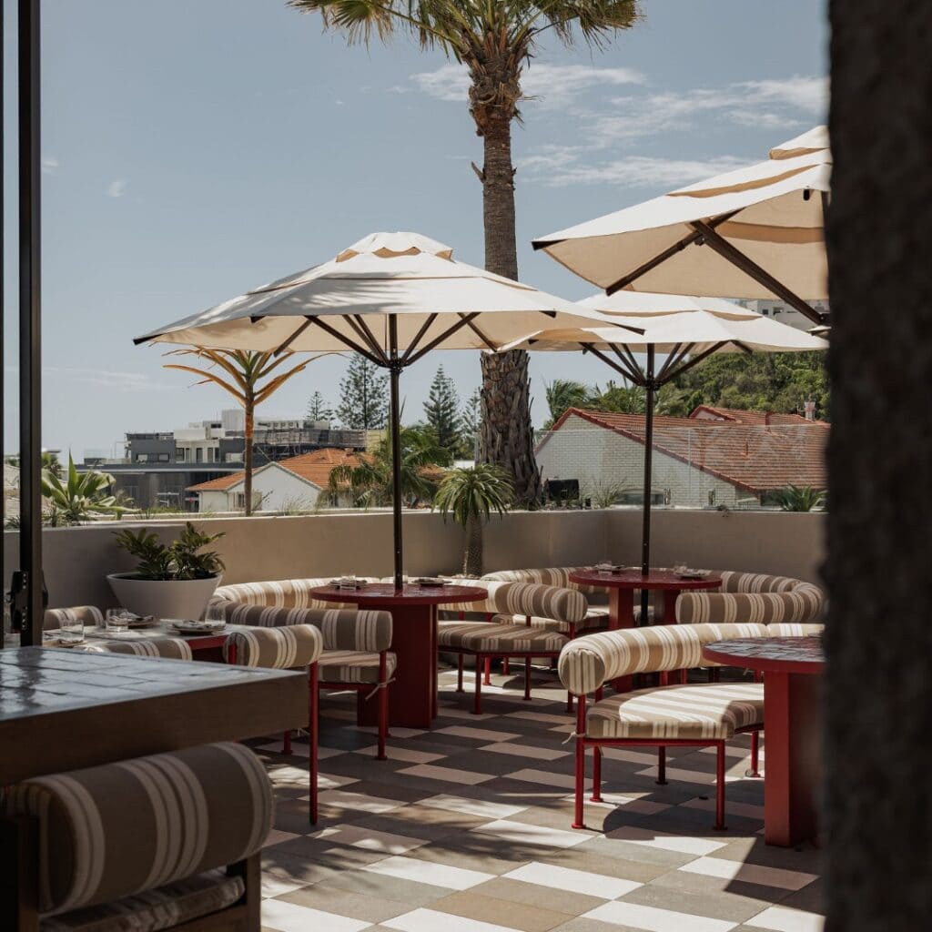 With indoor booth seating, spacious balconies, and comfy bench seating to perch on with a cocktail, there are plenty of spaces to sip and savour at Kirra beach House.