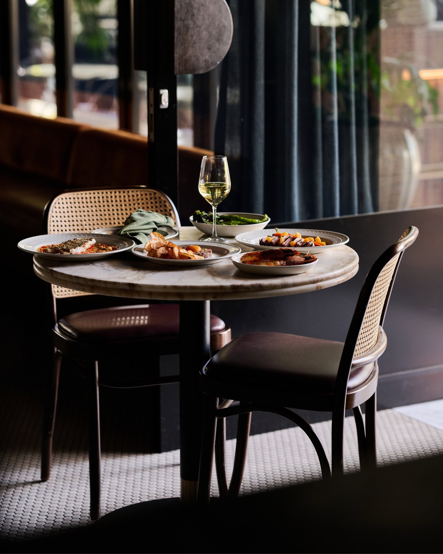 Expect classic European dishes paired with exquisite cocktails and a backdrop of luxe interiors. We’re talking a custom-built mosaic bar, marble, leather, pendant lighting and Bentwood chairs.