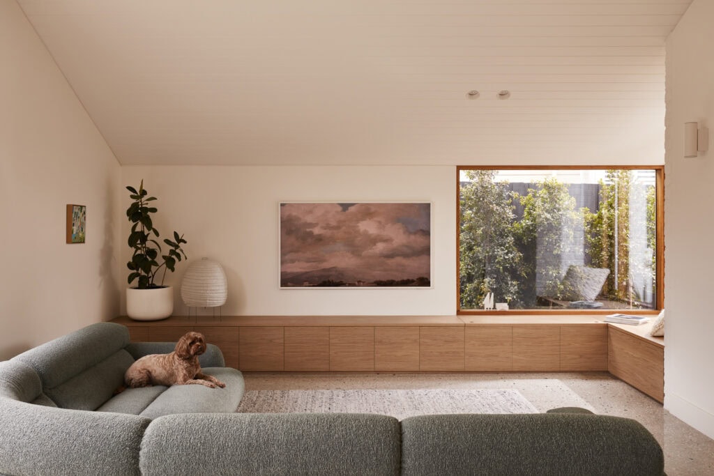Having successfully blended the old with the new in an exceptionally artful way, there is plenty to be proud of with this project. For the team, this meant responding to a problem with simplicity, a strategy they stand by. Returning to the gabled roof form of the new extension, Fowler notes it was this feature that provided a vehicle for simplicity in every way. “It’s simple to construct and drain. It is sympathetic to the neighbours and is strongly connected to the original house.” She continues, “The internal volume created by the soaring ceiling feels unexpected and energising”, all “achieved through a singular and simple form that is beautiful, pragmatic and cost-effective.”