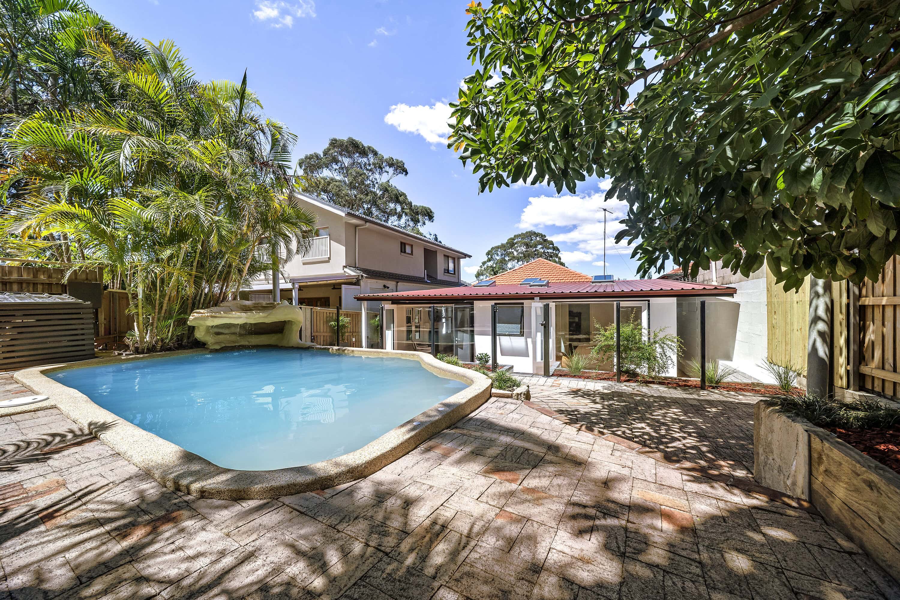 – Unique courtyard master suite including an outdoor bath