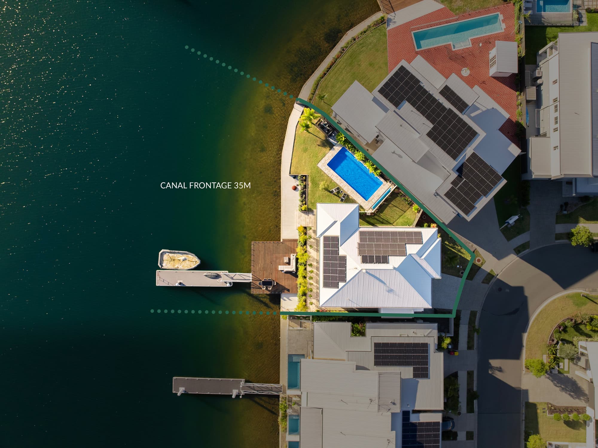 – Expansive canal frontage with deep water/high mast Moreton Bay access