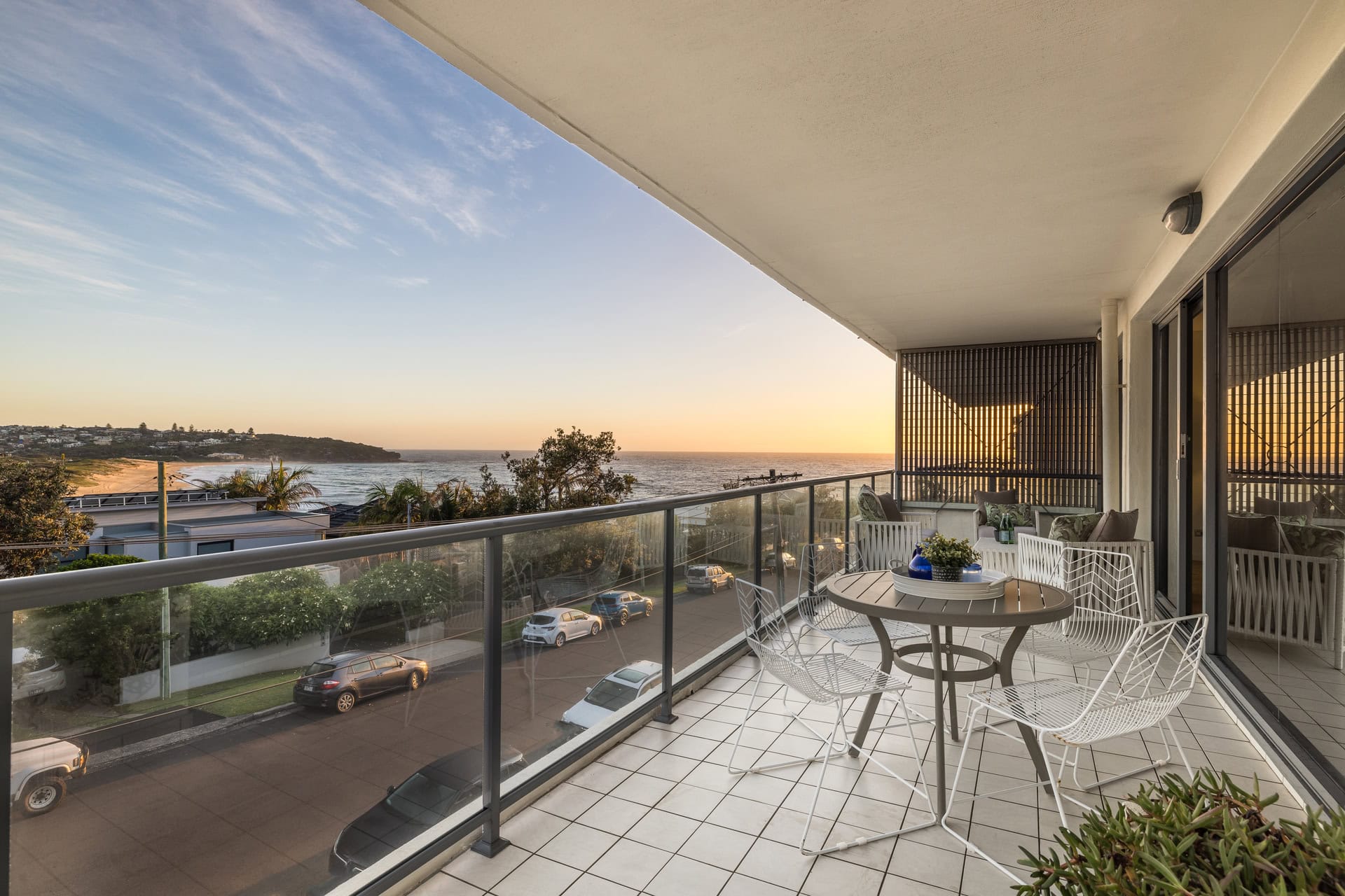 – Views sweep down the length of Curl Curl Beach to the wide Pacific horizon