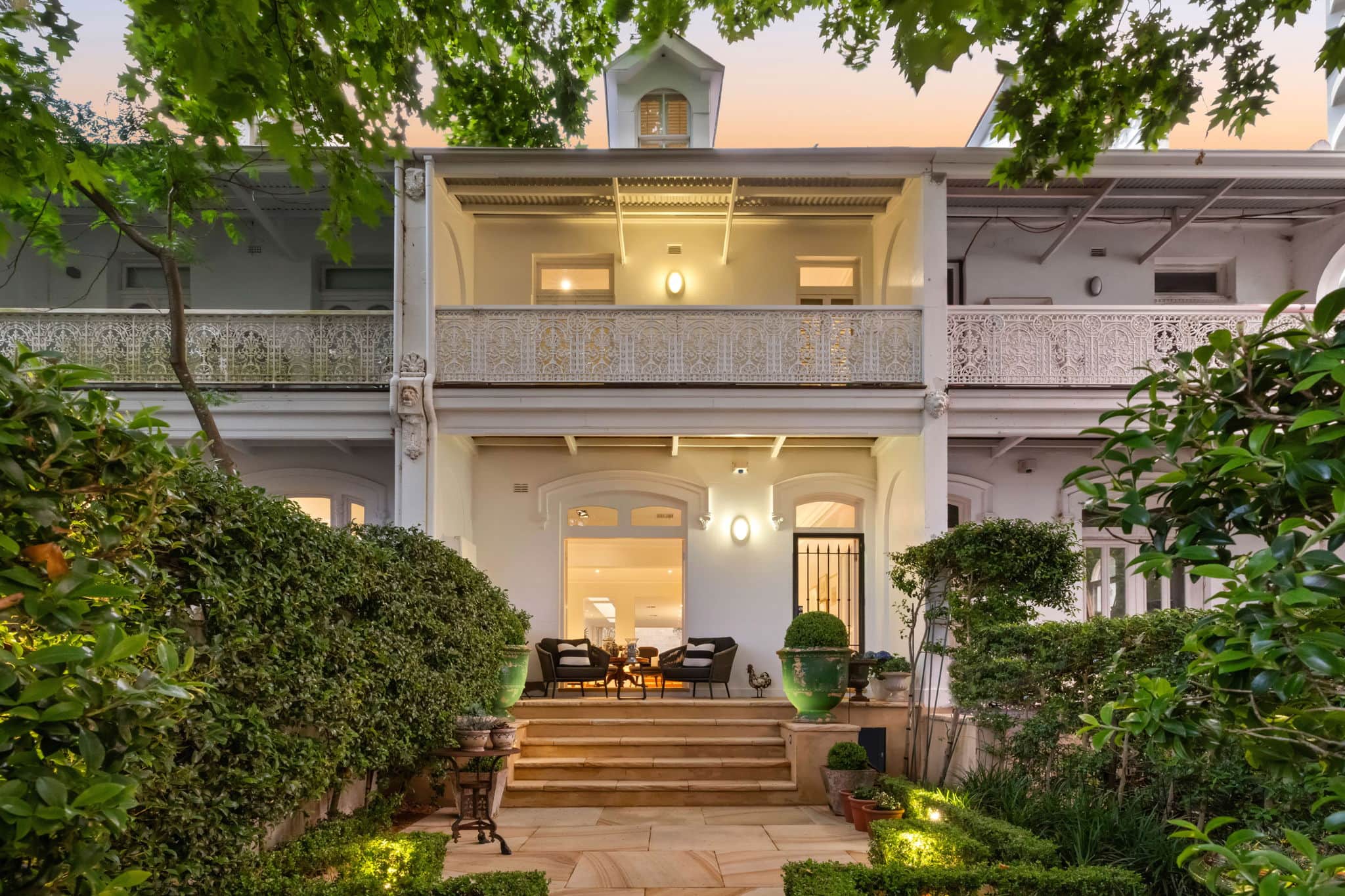 Combining rich historical appeal and timeless elegance while renovated to impeccable standards, this majestic Victorian terrace occupies a deep block in an exclusive leafy cul-de-sac with direct rear access to a double garage. Showcasing stately proportions enhanced by soaring ceilings and exquisite original features, it reveals an exceptional four-bedroom layout with grand formal and informal living areas enjoying effortless indoor and outdoor transitions. A gourmet chef’s marble kitchen with premium Miele gas appliances serves as the social heart of the home, while light soaked living and dining flow seamlessly to a private sun bathed entertainers’ courtyard. At the end of a boutique collection of four terraces in a prestigious Darling Point address, this luxurious family home is located within walking distance of Rushcutters Bay Park and the harbour foreshore, Edgecliff Station, cosmopolitan Double Bay village and prestigious schools.