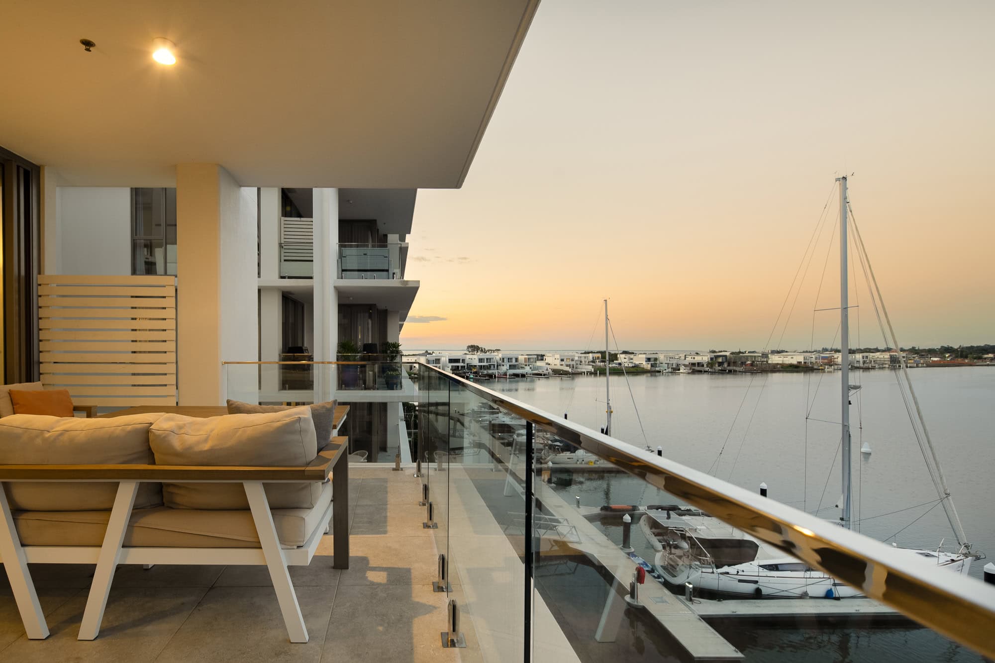 – North-facing waterfront position with private 12m pontoon and high-mast/deep water access