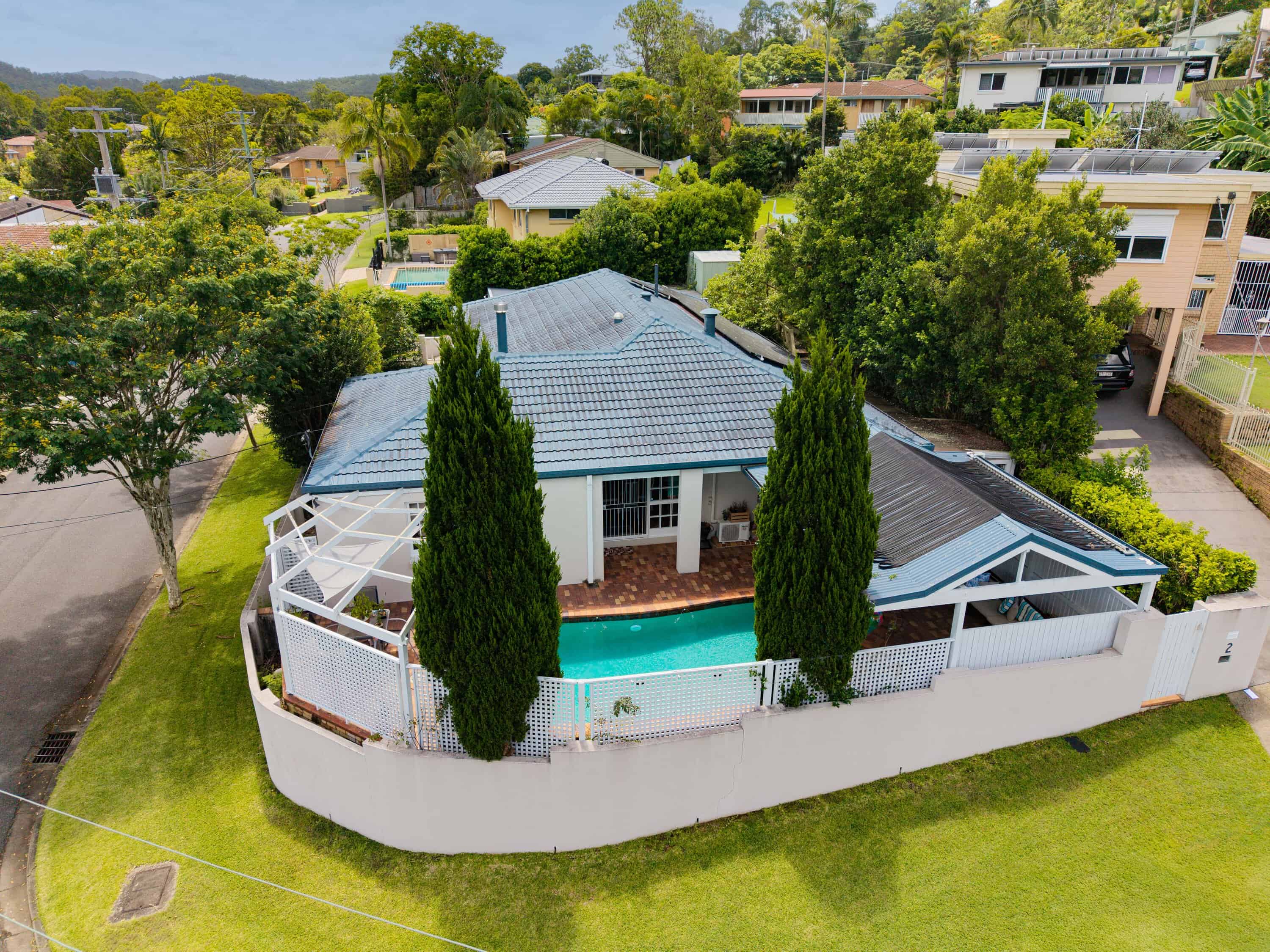 The front lounge offers a cozy retreat, while the expansive sunroom at the rear steals the show, with stunning views of the sparkling pool and the surrounding lush tropical gardens. This sunroom serves as a tranquil retreat, offering a seamless transition to the covered deck – the perfect space for alfresco dining and weekend barbecues with family and friends.