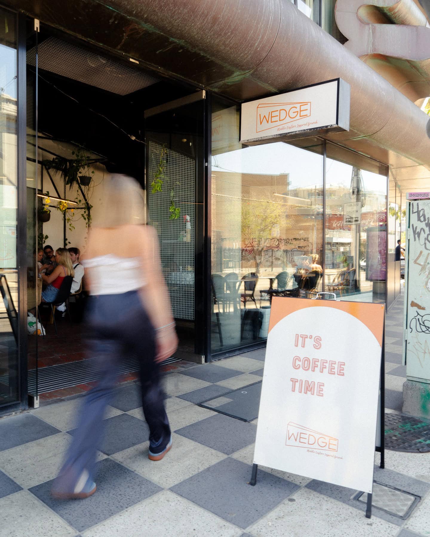 Wedged between Acland and Carlisle Streets, The Wedge is a fun St Kilda favourite where exceptional coffee meets Middle Eastern flair. Start with a soothing chai latte before diving into falafel Scotch eggs with baba ganoush, crispy flatbread, pickled turnips, pomegranate and spiced Tripoli sausages. Sweet tooths are rewarded with banoffee waffles crowned with vanilla bean ice cream and baklava crumble. Warm, flavourful and full of charm — this cafe in St Kilda is brunching at its most delicious.