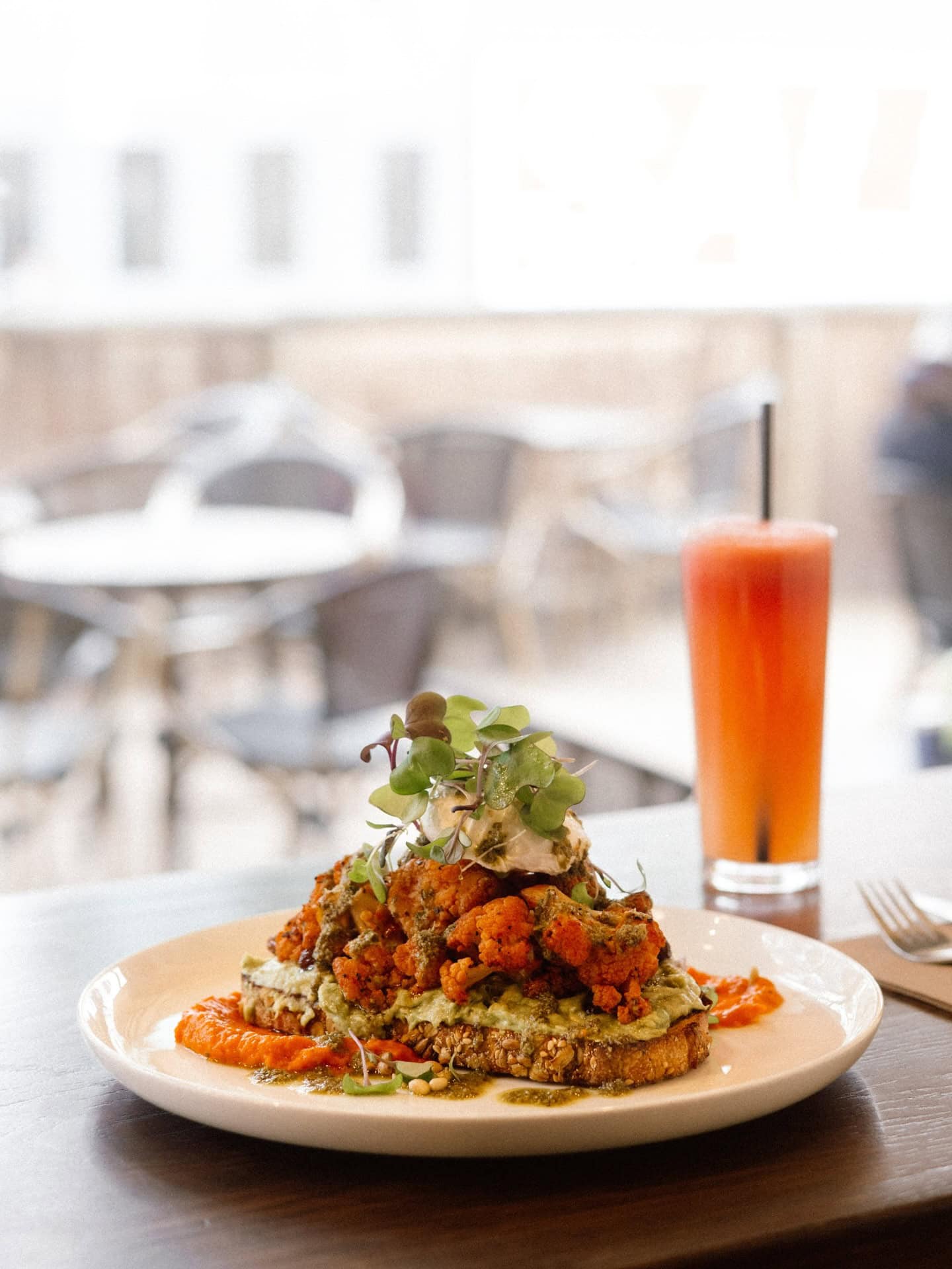 Ms Felix has breezed into St Kilda, reclaiming the famed Café Racer corner with sunshine, style and a dash of mischief. Inside, marble meets rattan, St Ali coffee flows, and the menu walks the fine line between comfort and temptation — from avocado and feta mousse to hot-honey fried chicken waffles and eggs benedict three ways, kissed with apple-cider hollandaise and kimchi powder. Add babycinos, puppachinos and that sea-salted view, and you’ve got St Kilda’s new brunch royalty.