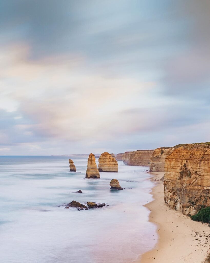 Start in Torquay, birthplace of Australian surf culture, where early risers chase the first break. Stop for a vanilla slice in Lorne before winding past cliffs carved by wind and time. Reach the Twelve Apostles — once twelve, now eight — best viewed at sunrise when the limestone glows honey-gold.