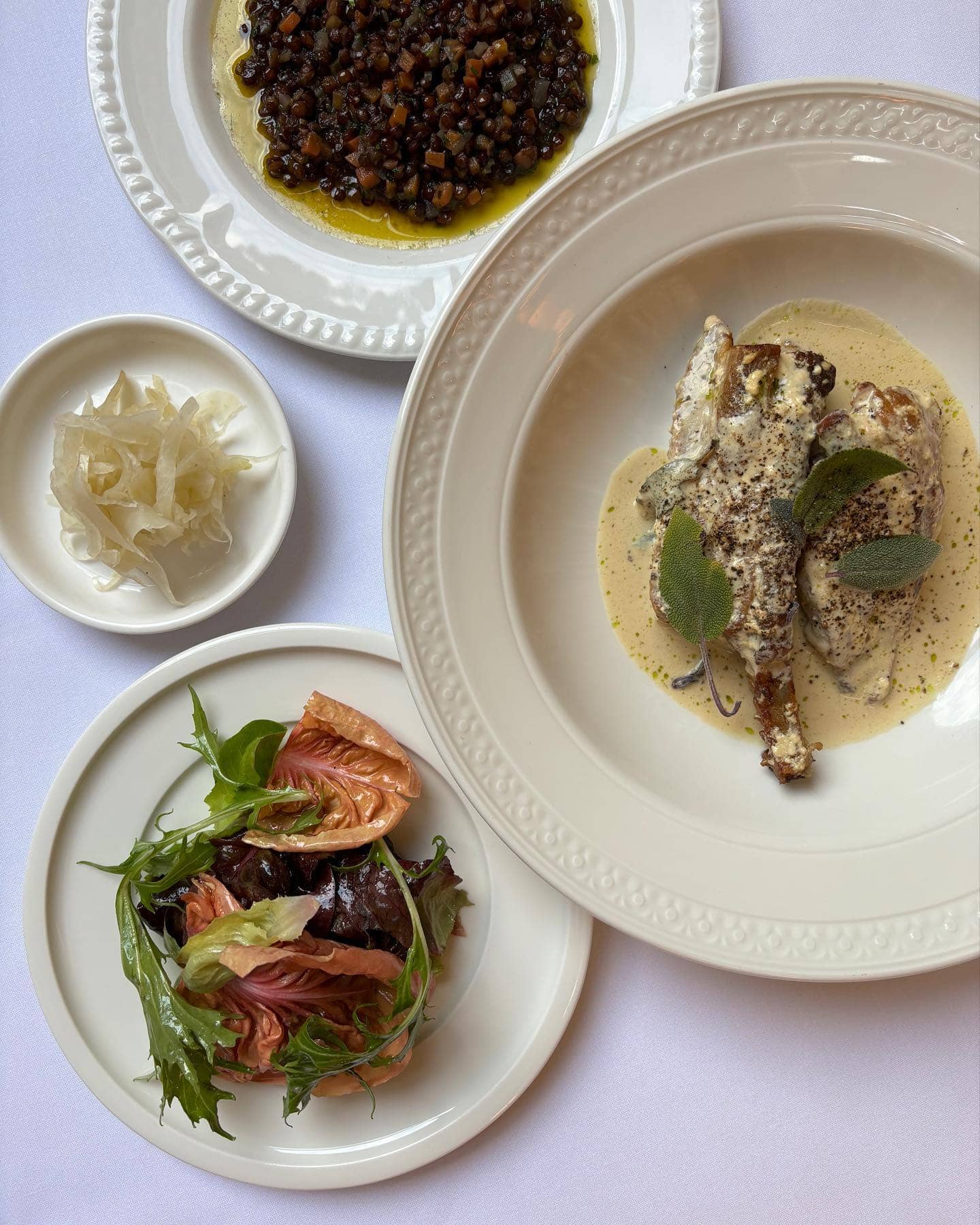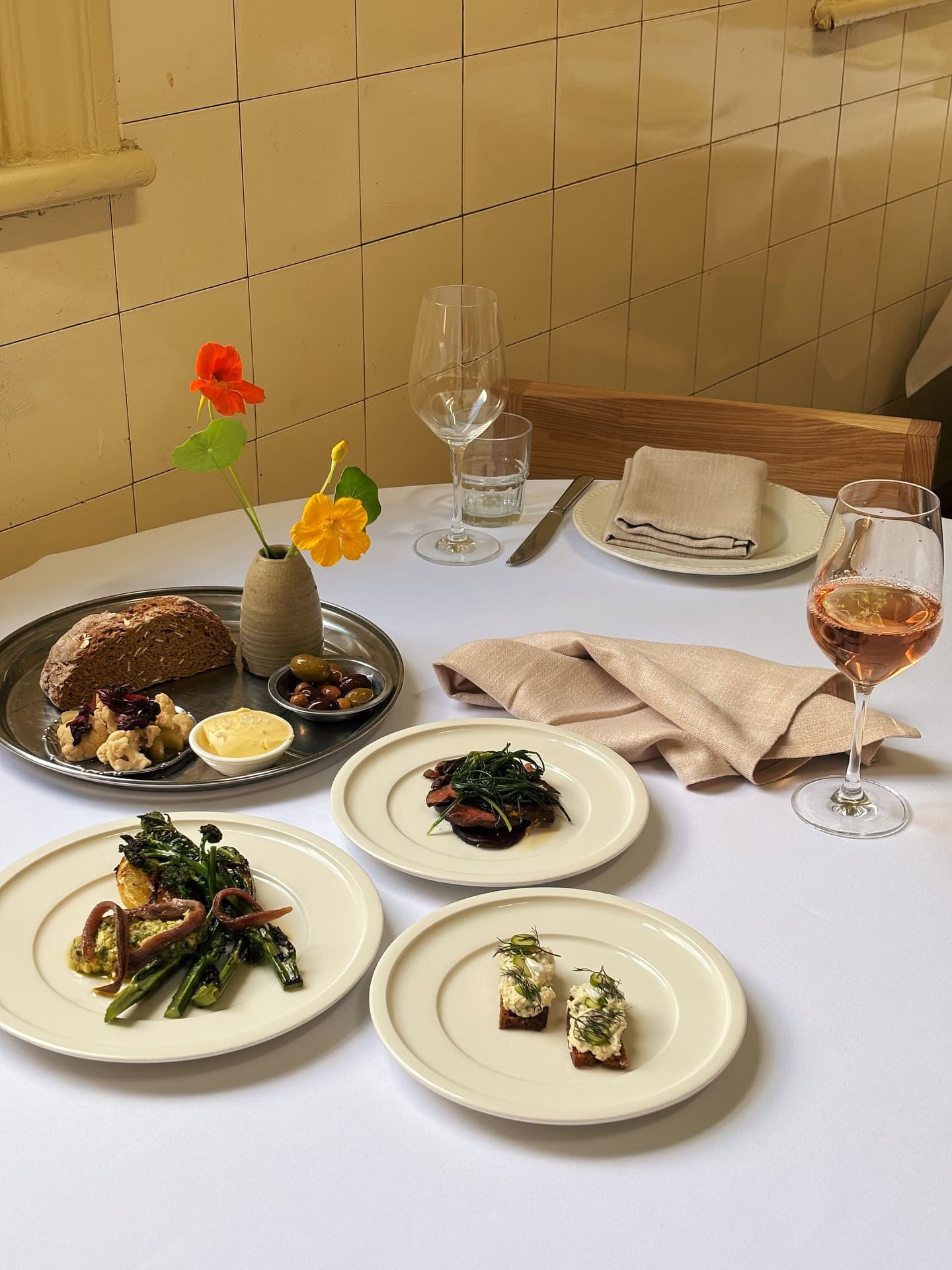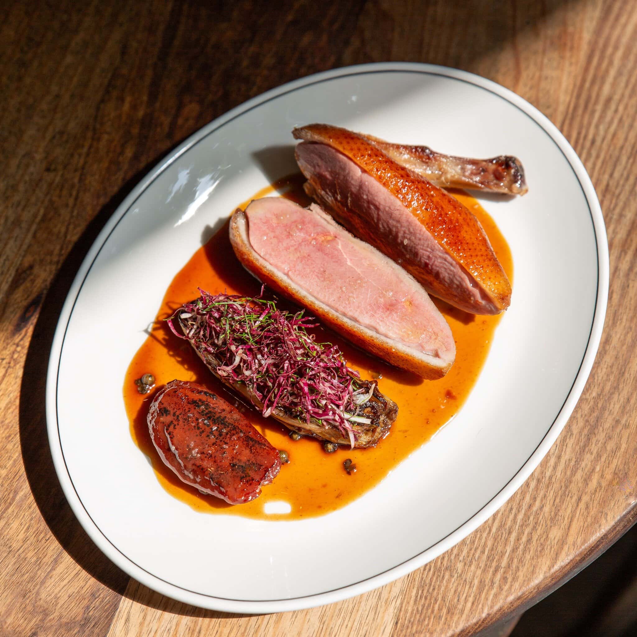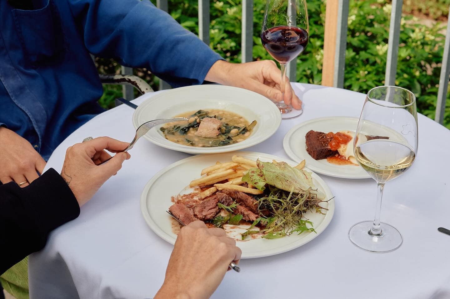 Inside the Abbotsford Convent’s greenery, Julie is spring written in italics. The terrace sits under trees; birds provide the house soundtrack; the wine list is thoughtful and alive. Plates read like a postcard from the garden — textures bright, seasoning assured, nothing overworked. Choose the set menu indoors or drift outdoors for à la carte and sunshine. A spritz could easily turn into a bottle of something biodynamic and elegant. Everything here champions ease and good produce, wrapped in the calm of those heritage walls and gardens.