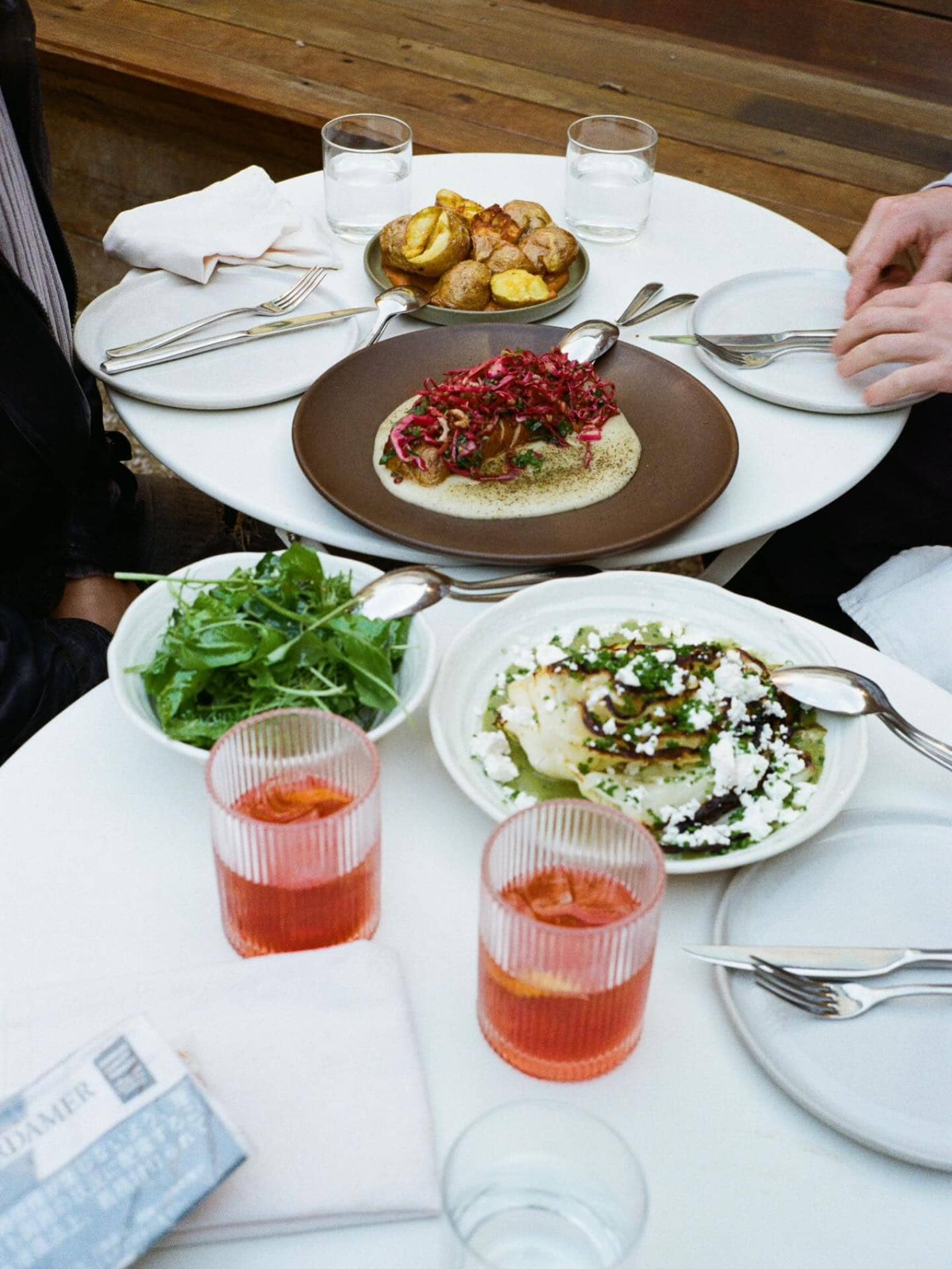 Arnold’s feels homemade in the best possible way: records spinning, artwork winking, a sliver of courtyard out back where sunlight pools like honey. The kitchen favours produce and personality — bright crudos, sharp little dressings, herbs that wake the palate. Wines lean local and lively; cocktails nod to garden flavours without turning twee. Out front, a couple of tables make the street your theatre; out back, it’s all soft chatter and shared plates. A neighbourhood bar that behaves like a favourite friend: easy, generous, seasonally switched-on.