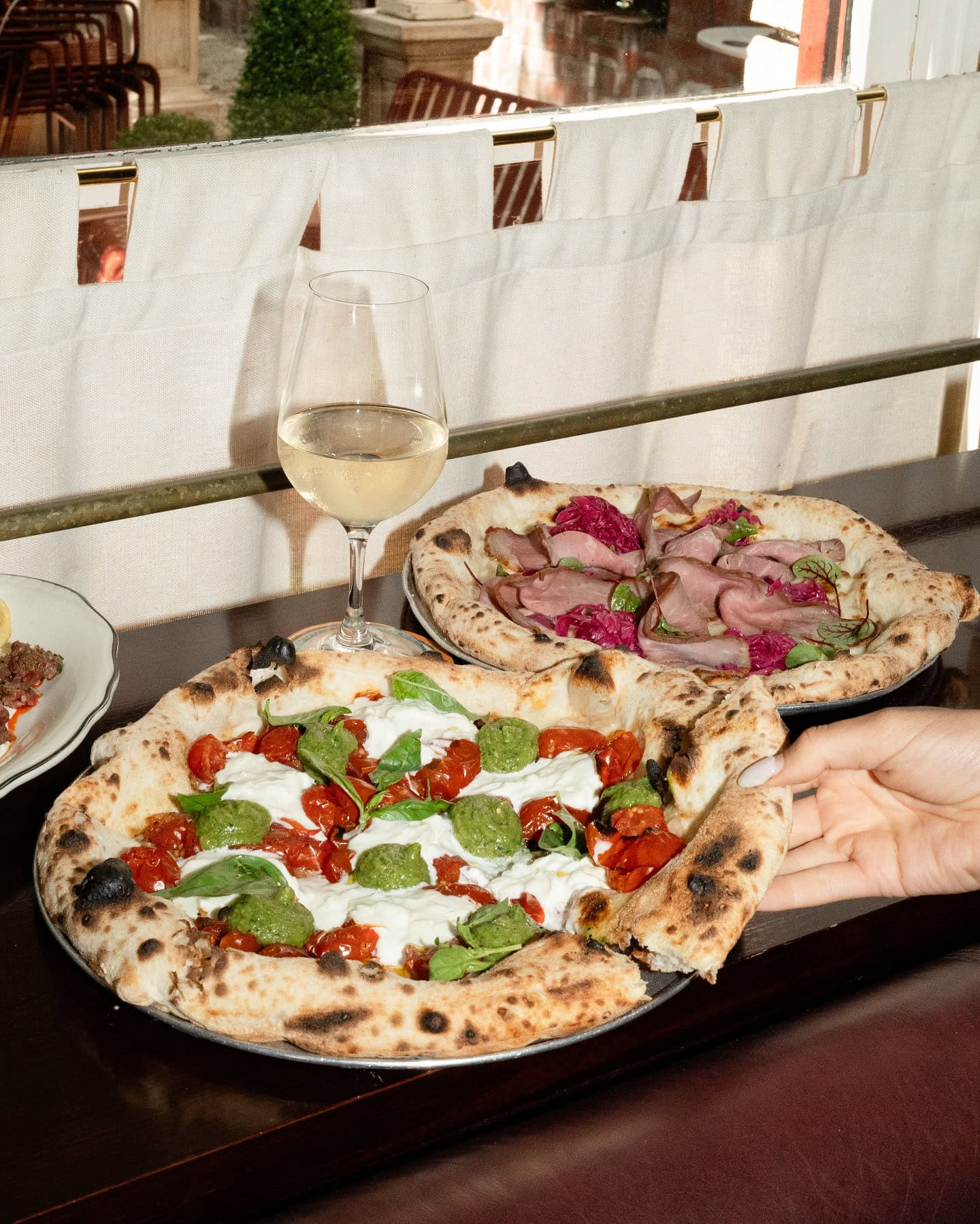 Di Stasio Carlton is where Melbourne’s artful Italian spirit spills into the open air. Through a discreet laneway lies Il Cortile — a sun-dappled courtyard crowned by a 17th-century fountain, sandstone urns and the soft hum of lunchtime chatter. Pizza and pasta meet prosecco and sculpture; every detail feels cinematic. Long, languid afternoons unfold beneath the trees, where the light drifts just so and la dolce vita feels entirely within reach.
