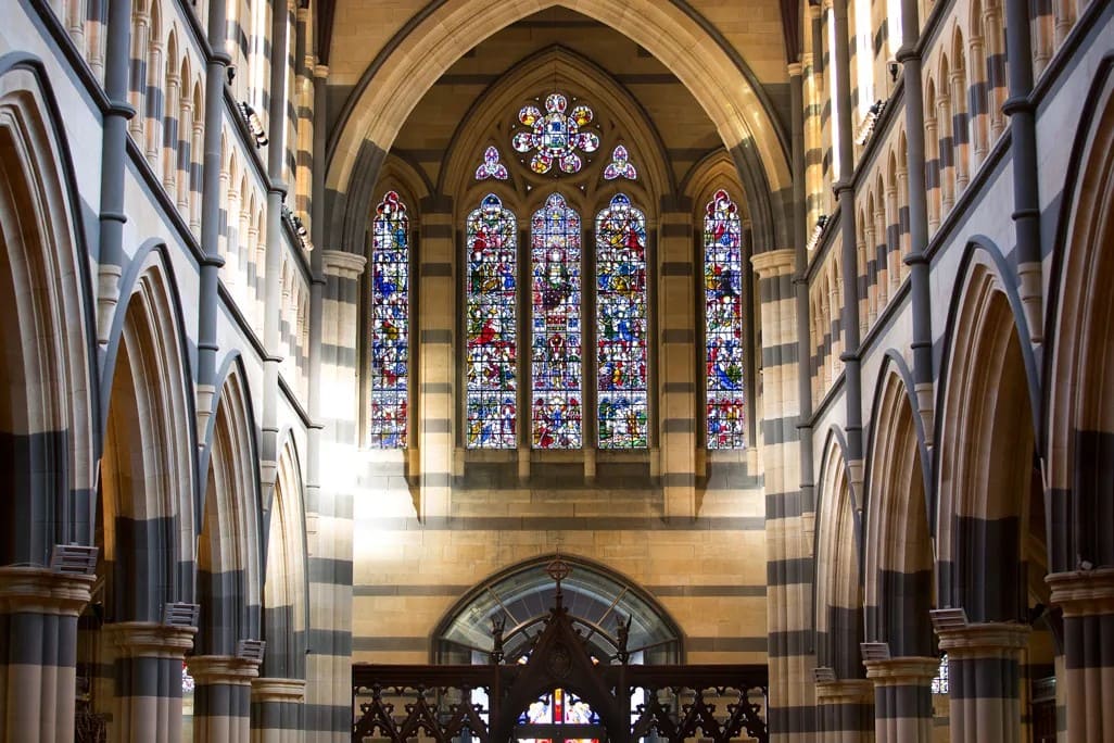 Right opposite Flinders Street Station, St Paul’s Cathedral rises above the city with neo-Gothic drama and remarkable architectural detail. Inside, stained-glass windows, intricate timberwork, and vaulted ceilings create a space that feels both grand and contemplative. A functioning Anglican cathedral with a rich history, it also hosts choral performances and events, making it a rewarding stop for lovers of architecture, music and Melbourne’s historic heart.