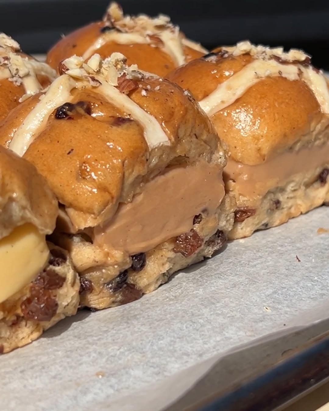 Grain Bakery went viral last Easter for its golden hot cross buns piped with velvety pistachio custard, and thankfully, they’re back with two new spins this year: Pistachio Crunch and Ferrero Rocher. Not into the fancy flavours? Their traditional fruit and chocolate buns (both baked fresh daily) are just as deserving of your attention.
