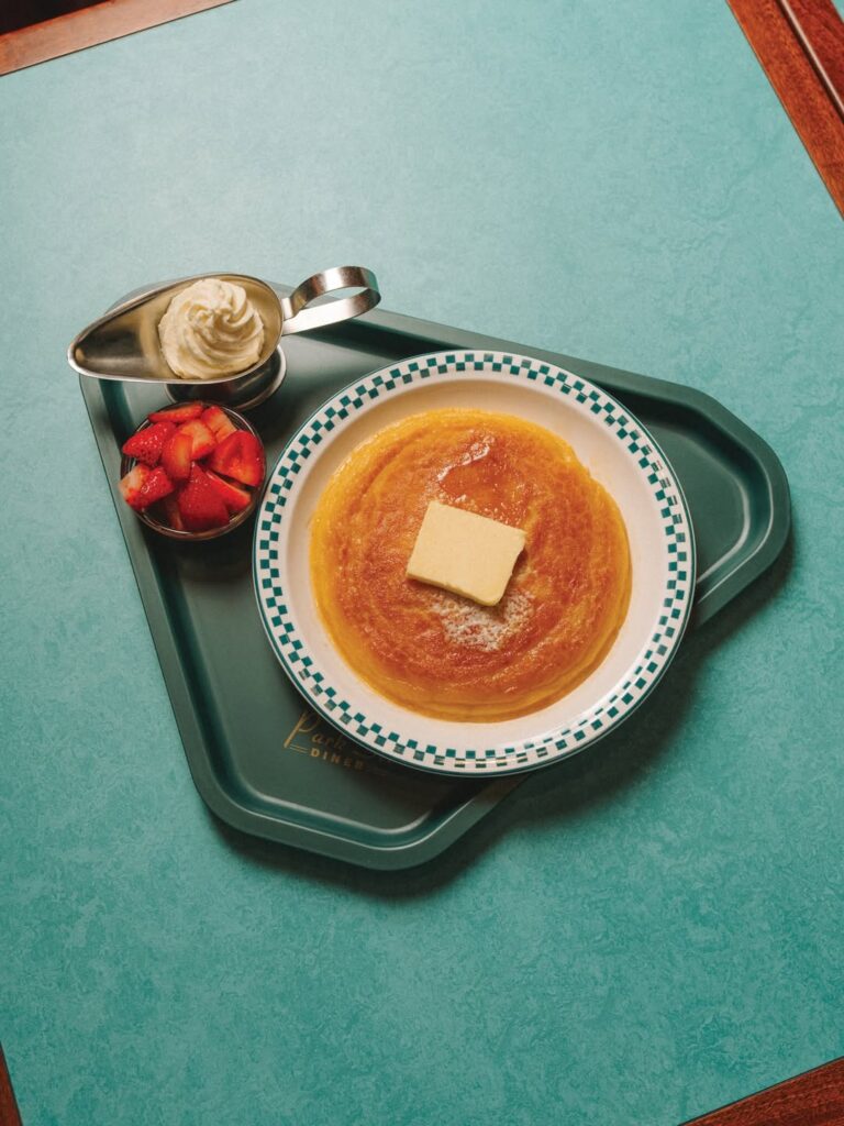 Brought to us by the Grounds team, Park St Diner brings full-blown American nostalgia to the CBD, right down to the coffee mugs, chrome finishes and syrup-drenched plates. The hero order? The Honey Butter Big Pancake… a single, deep-dish-style pancake that lands somewhere between a classic serve and a soft, fluffy cake.