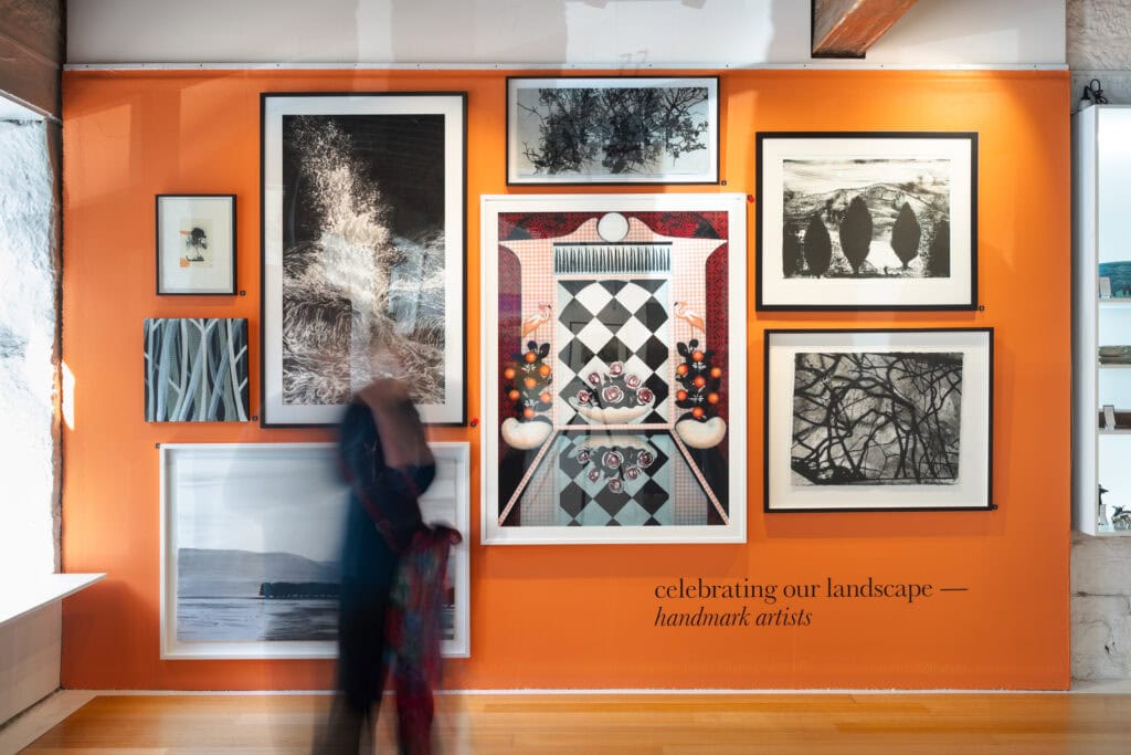 For Allanah Dopson, Handmark’s Director, the gallery is a tribute to the “… handmade, the family of Tasmanian artists we represent, and our great staff.” Since its opening in 1980, Handmark has showcased the diverse and eclectic talents emerging from the Tasmanian art scene. The gallery, located in a coveted building in the historic Salamanca hub, features works by both established and emerging artists. From raku-fired ceramics and glass sculptures to textiles and wood, the unique pieces sit alongside more traditional mediums, offering a chance to adorn your walls or simply admire.