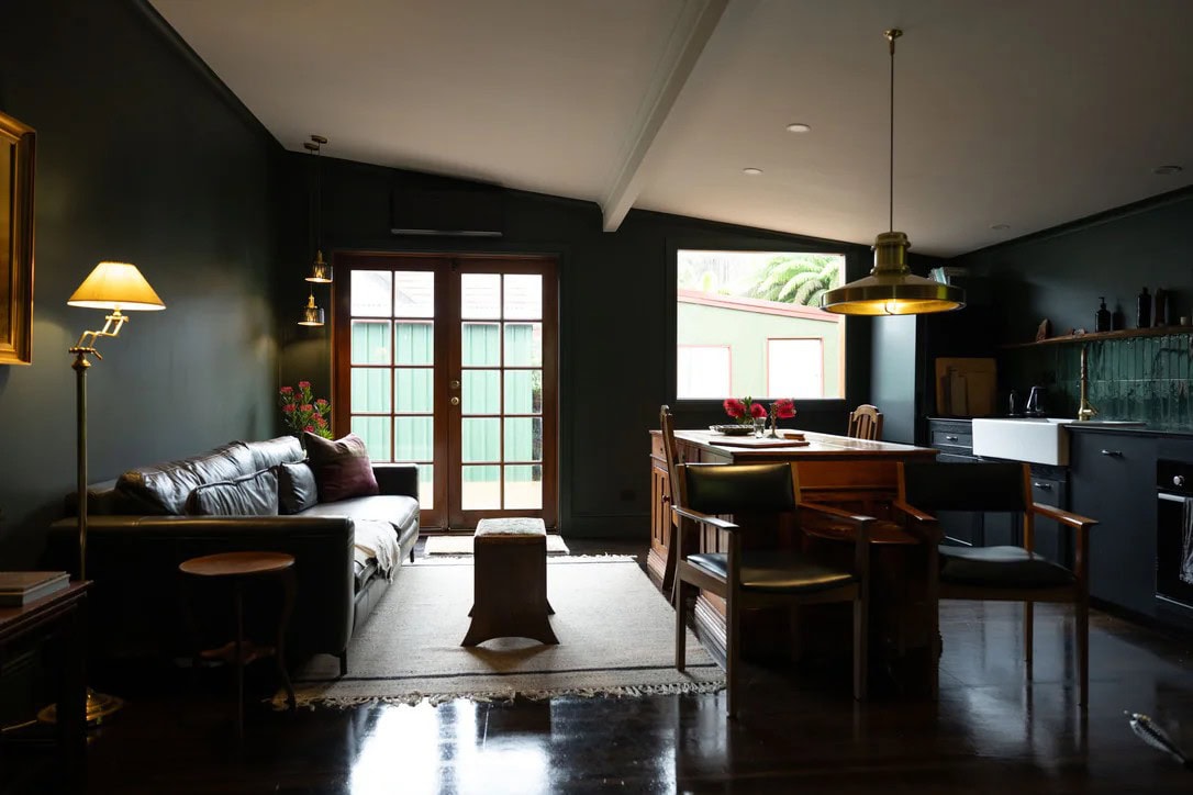 This Queenstown cottage has a backstory worth dining out on. Once perched on the edge of Macquarie Harbour, it was moved piece by piece to its current address more than a century ago, and now lives a second life as one of the West Coast’s most enchanting stays. Inside, rich colour, raw timber and a wood fire dial up the romance, while the rainforest-view bathroom feels deliciously indulgent. Step outside and you are moments from pubs, galleries and shops, with mountains rising all around.