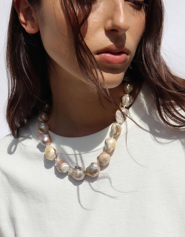 Bold, textured keshi pearls meet sculptural elegance — a necklace that does the talking while she keeps things quietly confident.